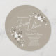 Personalize este Chá de panela Floral Branco Bonito Círculo de Na moda, totalmente personalizável e definido como modelo para sua fácil personalização. Flores brancas em um fundo bege tornam este convite muito rústico. Esta é a versão de texto branco.