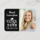 Cartões de Gabinete de Convite de Classe de Foto de Mini Festa de formatura Dimensionados a 3,5x2,5 polegadas, esses pequenos cartões personalizados de convite para fotos de graduação de cores podem ser inseridos com anúncios de graduação ou usados para distribuir a amigos e familiares (os envelopes não são incluídos ou oferecidos). A design apresenta uma foto, nome na escrita moderna e ano de aula em um design de tipografia em rico, realçado com um boné de formatura na frente e detalhes da festa no verso, tudo na sua escolha de cores (mostrado em branco a preto) que você pode mudar para coordenar com a foto de cores da escola ou com o papel de carta. Vendido em lotes de quantidade personalizada quando for desejada uma quantidade inferior a 100. ASSISTÊNCIA: para obter ajuda com a modificação ou personalização do design, alteração de cor, transferência do design para outro produto ou, se você quiser coordenar itens, entre em contato com o designer ANTES DE ENCOMENDAR através da guia MENSAGEM de bate-papo Zazzle ou envie um email para makeitaboutyoustore@gmail.com.