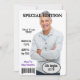 70 de convite de aniversário com modelo de revista para personalizar com a foto de seu aniversário. Todo o texto pode ser alterado.