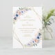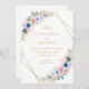 Convites de casamento modernos florais e geométricos. Nas cores Douradas, Peach & Blue.