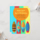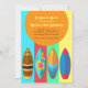 Um fundo colorido e designs de surf-board que chamam a atenção fazem deste convite um que você quer enviar e um que eles querem receber. (FP)<br/>() O cartão é fácil de personalizar com o seu texto, fonte, cor da fonte, opções de forma de papel e escolha de seis tipos de papel.<br/>() Não exatamente o que você está procurando? Todos os nossos produtos podem ser personalizados para atender às suas necessidades sem custos adicionais.<br/>() Basta entrar em contato conosco em askpixieprints@aol.com.<br/>() Coordenando os produtos disponíveis: Apenas nos pergunte!