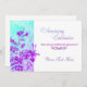 Convite de aniversário de flores azuis e roxas.