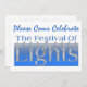 Os sotaques azuis, brancos e prateados estão presentes neste convite de celebração de Chanucá. Venha celebrar o Festival das Luzes.