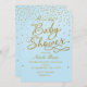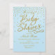 Convite para Confetti Azul Claro e Dourado chá de fraldas.
