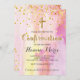 Este convite de confirmação de aquarela moderno apresenta uma cruz falsa de ouro e caindo confete.