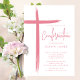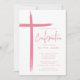 Este convite de confirmação rosa moderno apresenta um design de cruz na moda, perfeito para celebrar este marco religioso especial. O esquema de cor rosa-pincelada adiciona um toque de feminilidade e graça ao convite, fazer-o ideal para a cerimônia de confirmação de uma jovem. O design simples, mas sofisticado, certamente impressiona os convidados e dá o tom para um evento memorável.
