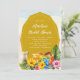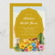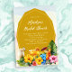 Chá de panela tropical, ou festa de solteira, convites. Bebidas especiais e flores de hibisco decoram o fundo deste convite personalizado. Um painel de ouro contém o texto com seu nome e título de partido em script. Use para qualquer evento de pré-casamento sobre temas tropicais/luau.