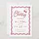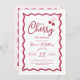 Celebre o seu grande marco da forma mais doce com o nosso design de "Primeiro Aniversário da Cereja"! Apresentando um adorável filme de cereja com um arco cor-de-rosa querido, fontes brancas e bordas onduladas lúcidas, este design inspirado em coquetes é perfeito para uma encantadora e memorável primeira festa de aniversário.