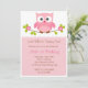 Coruja bonita, mas elegante, no convite do Branch, a rosa, perfeita para o primeiro aniversario da garota, ou como convite de Chá de fraldas.