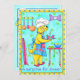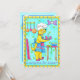 "Uma surpresa para o janto" mostra o Cachorro do Chef consertando uma surpresa, um osso embrulhado com uma vela, pronto para servir. Na frente do convite, a expressão do Chef Dog mostra orgulho enquanto servia a surpresa. Fuchsia embrulhando papel se inclina contra a parede. Potes e panos penduram na parede com um relógio roxo em forma de osso. O fundo é turquesa com estampas verdes e tem uma borda amarela com pontos azuis. O verso com um fundo de turquesa leve tem as informações de evento que você deve preencher para o convite.