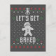 Suéter de Natal engraçado e feio com pão de gengibre e "Vamos é assado" na frente. Um convite a biscoitos de Natal assares ou troca de biscoitos, ou um, por uma doce tradição de feriados.