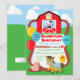 Convide amigos e família para a sua próxima festa de aniversário com este convite de aniversário de animais de quintal giro! Apresentando uma fazenda bonita com uma vaca, cavalo, galinha e porco.