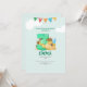 Um convite para aniversário de 3 anos, com dinossauros giros, com dinossauros bonitos e diversão pré-histórica — perfeito para o seu pequeno explorador que está fazendo três!
