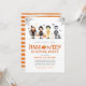 Faça do aniversário do seu filho uma celebração manchata com este convite para crianças fantasmas de Festa de aniversário de Halloween — perfeito para pequenos adoradores de fantasia! Apresentando ilustrações adoráveis de aquarelas de crianças vestidas como um morcego, bruxa, abóbora, zombie e esqueleto, este charmoso design é coberto com toques lúdicos de Halloween como morcegos, abóboras, teias de aranha e uma lua brilhante. Com sua divertida mistura de fofos e assustadores, ele define o tom perfeito para uma noite de fantasias, guloseimas e diversão inesquecível de aniversário. Fácil de personalizar e ideal para qualquer cheio de entusiasmo de truque ou de tratamento em outubro!