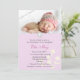 Convidado de Criança Rosa. Simples convite de Natal para uma menina. Design tem o terço superior do convite para sua própria foto do seu lindo pequeno, com texto explicando a data, hora e local do Natal e da festa depois. Uma pequena cruz e um impressão floral em branco adicionam alguns detalhes a este design. Vários tamanhos e tamanhos de papel disponíveis. Adicione sua própria imagem clicando em 'Alterar imagem' no menu personalizar à direita da tela do produto. em seguida, carregue sua própria foto do bebê do seu PC. Adicione a sua própria imagem, clicando em 'Alterar imagem' no menu personalizar à esquerda da janela do produto e carregue a sua própria imagem do bebê. As imagens orientadas para a paisagem funcionam melhor para esta imagem design mostrada é usada sob licença e é estritamente apenas para fins ilustrativos.