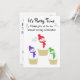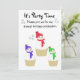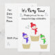 Três cupcakes de bonitinhos de neve põem a palco para uma festa de aniversário ou festa de férias. Cor brilhante e pequenos flocos de neve no fundo. Personalize com todas as informações de sua parte conforme desejado.