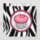 Um convite com um cupcake rosa-quente descrito em dentro preto com quadros rosa e preto correspondentes. O plano de fundo é impresso em preto e branco. O lado oposto apresenta um plano de fundo de impressão zebra correspondente a um texto preto e rosa sobre o lado dela. Personalize com detalhes do evento.
