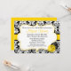 Convide seus convidados para seu chá de fraldas, chá de panela, festa de aniversário ou qualquer evento de uma forma divertida com este convite de damask preto e amarelo.