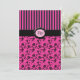 Este vibrante e rosa-quente e negro, damasco floral com convite de casamento de listras no papel básico seria perfeito para um casamento de temas cor-de-rosa e pretos. A frente tem um ponto para você adicionar um detalhe de monograma das primeiras Iniciais da Noiva e do Groom, ou remover uma delas e usar o apelido inicial. Itens correspondentes neste design podem ser encontrados abaixo. Se você precisar de outros itens correspondentes, envie um email para niteowlstudio@gmail.com.