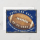 Convide seus hóspedes em estilo com este jogo de futebol noturno tema Salve o cartão postal do convite de Data. Esta design mostra uma bola de futebol na frente com as palavras "Salve a Data", a data e o ditado "É com quem você assiste o jogo com isso!" A parte de trás do cartão postal tem os detalhes da sua noite de jogo para você personalizar. Concebido pelo artista mundialmente famoso ©Tim Coffey.
