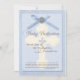 Convite para a Dedicação de Bebê com cobertura de velum falso e fita falsa sobre um fundo azul, e o verso bíblia da Deuteronomia 6:7. Projetado por Rycky Creations com trabalho de arte da Pixelscrapper.