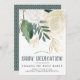 Um convite para a dedicação de uma menina bonito e moderna em brilho de ouro verde, branco e falso, com rosas de aquarela e folhas e letra de estilo escrita de pincel.