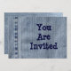 Convite de festas impresso sobre uma foto de jeans azuis desbotados