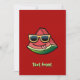 Bela caricatura. Uma fatia de melancia com óculos de sol. Cor de fundo personalizada. Um padrão perfeito no lado de trás. Texto personalizado de ambos os lados.