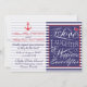 Convite de design de casamento náutico, estilo de vintage, com padrão riscado.