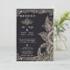 Este design de convite de casamento cativante apresenta uma canvas negra rica, lindamente contrastada por ornamentados, embelezamentos de ouros semelhantes a rendas. As bordas são enfeitadas com padrões florais e vinícolas intricadamente tecidos, criando uma moldura luxuosa que expele elegância e sofisticação. À direita, uma grande mostra de pétalas em camadas e reviravoltas deixa os desenhar atentos com seus belos detalhes e profundidade artística. No centro, um delicado emblema floral irradia charme, equilibrando perfeitamente o intrincado trabalho fronteiriço. Este design incorpora romance eterno e opulência, fazer ideal para uma celebração de casamento cheia de graça e grandiosidade.