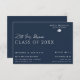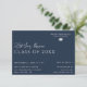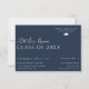 Reunião escolar Salve o design de data, seja para Segundo grau ou pode ser alterado para a faculdade. Elegante, estilo elegante. Fundo azul-noturno. Elemento de chapéu de graduação incluído. Personalize o texto. Todo o texto é editável, para que possa ser facilmente alterado para um convite ou anúncio para um evento de graduação. Para manter o papel de carta do evento, salve o cartão de data pode ser encomendado no impressão, mas também pode ser comprado em formato digital, transferível.