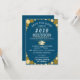Reunião escolar Salve o design de data, seja para Segundo grau ou pode ser alterado para a faculdade. Anúncio de convite elegante. Fundo azul noturno com confete de ouro. Elemento de chapéu de graduação incluído. Personalize o texto. Para manter o papel de carta do evento, salve o cartão de data pode ser encomendado no impressão, mas também pode ser comprado em formato digital, transferível. Para economizar mais custos de correio, o design é moderno no sentido de que direciona as buscas para um site onde você pode incluir todas as informações necessárias que um convite deve incluir, por exemplo, detalhes de RSVP.