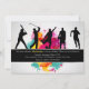 O convite perfeito para um atleta de qualquer idade. A carta apresenta cinco silhuetas jogando beisebol, golfe, futebol, basquete e correndo. Uma abertura de cores brilhantes cria o fundo.