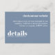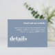 Mantenha sua carta de casamento elegante e simples com este Convite de Detalhes do Casamento Mínimo. Com um layout limpo e moderno com tipografia de eterno, este cartão é perfeito para compartilhar todas as informações importantes sobre o seu grande dia. Sua design minimalista garante que seus detalhes permaneçam o foco enquanto complementam qualquer estilo de casamento. Ideal para casais que apreciam elegância subestimada e estética contemporânea.