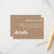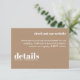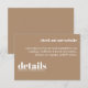 Mantenha sua carta de casamento elegante e simples com este Convite de Detalhes do Casamento Mínimo. Com um layout limpo e moderno com tipografia de eterno, este cartão é perfeito para compartilhar todas as informações importantes sobre o seu grande dia. Sua design minimalista garante que seus detalhes permaneçam o foco enquanto complementam qualquer estilo de casamento. Ideal para casais que apreciam elegância subestimada e estética contemporânea.