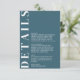 Mantenha sua carta de casamento elegante e simples com este Convite de Detalhes do Casamento Mínimo. Com um layout limpo e moderno com tipografia de eterno, este cartão é perfeito para compartilhar todas as informações importantes sobre o seu grande dia. Sua design minimalista garante que seus detalhes permaneçam o foco enquanto complementam qualquer estilo de casamento. Ideal para casais que apreciam elegância subestimada e estética contemporânea.