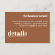 Mantenha sua carta de casamento elegante e simples com este Convite de Detalhes do Casamento Mínimo. Com um layout limpo e moderno com tipografia de eterno, este cartão é perfeito para compartilhar todas as informações importantes sobre o seu grande dia. Sua design minimalista garante que seus detalhes permaneçam o foco enquanto complementam qualquer estilo de casamento. Ideal para casais que apreciam elegância subestimada e estética contemporânea.