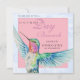 Um beija-flor, pintado à mão e espantosamente detalhado, em um belo convite de brunch de dia de as mães artístico moderno com sotaques de cor rosa e uma borda de nuvens celestiais pintadas à mão
