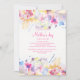 Este convite floral colorido apresenta um amplo espectro de cores e uma variedade de florins em uma borda correspondente superior e inferior. Adequado para qualquer celebração feminina.