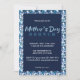 um convite para um brunch de padrão floral azul é uma excelente maneira de comunicar os detalhes de sua celebração aos seus convidados e criar uma atmosfera quente e acolhedora para sua mãe ou outras mulheres especiais em sua vida.