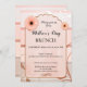 O convite do Elegante Dia de as mães Brunch, com um moderno pessel terra cotta e design de ouro rosa com flores de margarida gerbera. O fundo é um padrão listrado clássico em chocolate e cor de pêssego dos sonhos.