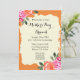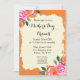 Junte-se a nós para uma bela festa de brunch de Dia de as mães! Nosso cartão de convite apresenta um design floral laranja impressionante, evocando sentimentos de graça e sofisticação. Trate sua mãe para um dia especial cheio de comidas deliciosas e companhia maravilhosa. RSVP agora e faça deste Dia de as mães um para lembrar!
