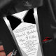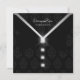 Faça uma declaração de sofisticação no eterno com este convite de casamento inspirado em smoking. Colocada contra uma lama de cinzas de pérolas com uma trim ao estilo da seda, a design apresenta um profundo balde de pico de seda vermelha e um monograma simbolizante de nó de amor de diamante. A frente revela um refinado arco de smoking com botões de diamante sobre um rico fundo damasco preto ou, com um segundo olhar, a silhueta graciosa de um vidro martini com caule de diamante, misturando elegância clássica com uma sugestão de talento moderno. Perfeito para assuntos de gravata negra, polos glamourosos, ou casais que amam um toque de brilho e sofisticação.