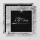 Uma História De Amor Nunca Termina O Tema De Casamento De Gravatas Negras. Estimulação de diamante com quadros brancos de satin "Uma História de Amor Nunca Termina" tipografia. Convocação de um veludo de diamante preto... olha para o fundo com o quadro de satin.