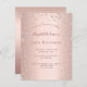 Um convite moderno, na moda e glamouroso para a 50ª festa de aniversário (ou qualquer idade) da mulher. Um fundo metálico rosa dourado falso com uma elegante borrifa rosa de diamante dourado. O nome é escrito com um moderno e escuro, rosa dourado, escrito com letra de estilo manuscrito. Modelos para os detalhes da sua festa. Fundo: rosa dourado. Dica: Se você não quiser que pareça um cartão postal, clique em personalizar, vá para o verso e remova o divisor e o carimbo de posto.