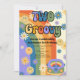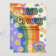 Você quer criar um convite de aniversário engraçado que se destacará? Então este é o convite perfeito para você! Ele apresenta um design de arco-íris retrô e é perfeito para meninas que amam tudo hippie. Perfeito para um segundo aniversário de meninas.