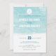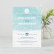 Este convite para casamento moderno apresenta um fundo aqua azul de aqua e um gráfico de areia dólar.