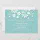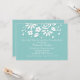 Um convite nítido, encantador, com um fundo azul-esverdeado, listrado e flores brancas "emboscadas". Bem adaptado para qualquer celebração feminina.