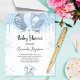 Para um chá de fraldas, comemorando um menino. Um fundo branco chic. Decorado com pingos de brilho azul, pintura pingando, balões e um bebê elefante giro. Personalize e adicione o nome da futura mãe e os detalhes da festa. O nome e o texto: Chá de fraldas são escritos com um script de estilo manuscrito