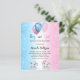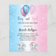Para um chá de fraldas para um bebê e uma menina. Um plano de fundo azul branco e rosa. Decorados com balões claros e azuis, cor-de-rosa e branco e poeira brilhante. Um elefante bebê e um elefante da gaby. Personalize e adicione o nome da futura mãe e os detalhes da festa. O nome e o texto: Menino ou Rapariga são escritos com um script de estilo 1 folha = 1 convite impresso de ponta a ponta.